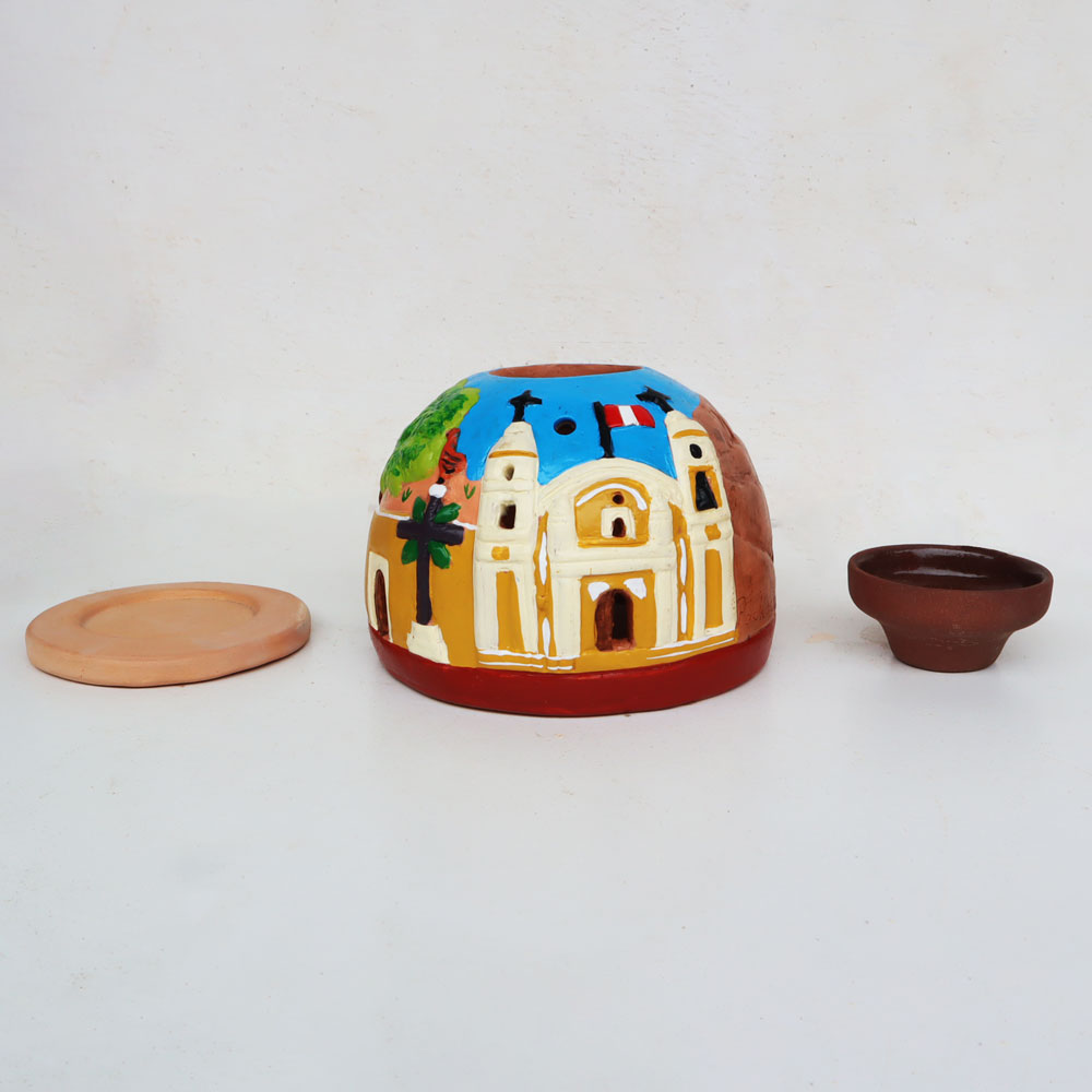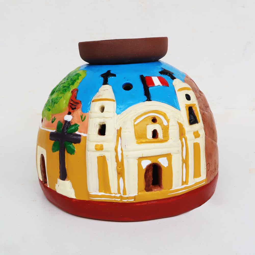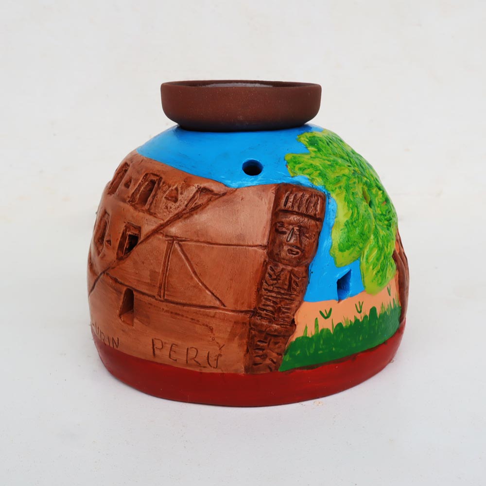 Pieza de cerámica hecha de arcilla y pinturas acrílicas.
